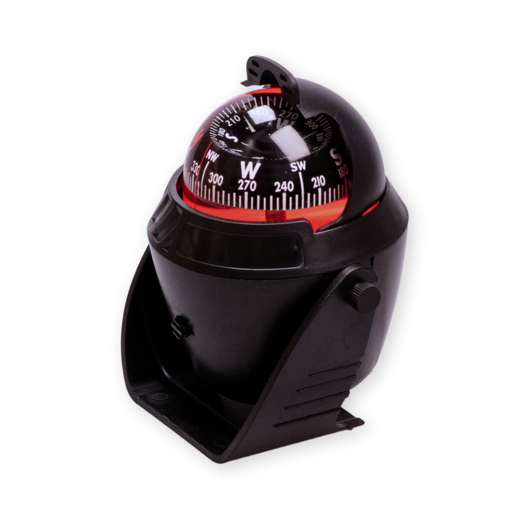 Bússola de sobrepor para embarcação, com base móvel, de fácil instalação, fixada por parafuso ou fita adesiva dupla face, fabricada em ABS de alta resistência, ideal para suportar as adversidades do ambiente marinho. Possui iluminação 12V/24V que facilita a navegação noturna, com uma iluminação leve e que não gera cansaço aos olhos.